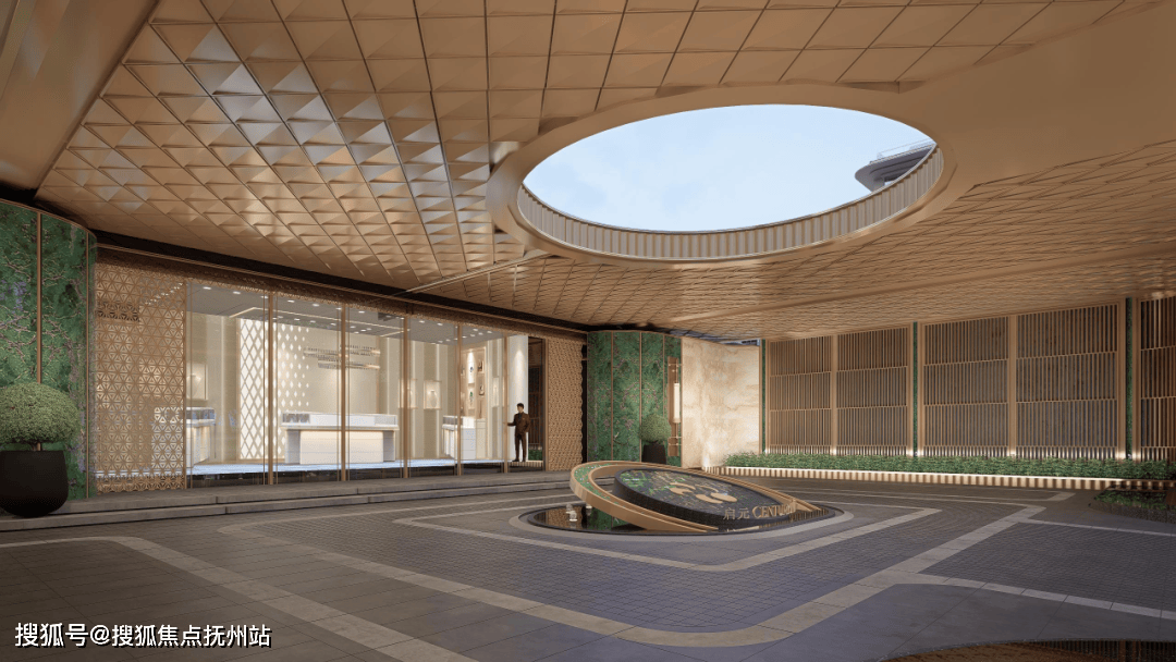 让仪式感融入到每一个细节。约75米恢弘门庭,两边的PRADA绿奢石,是向扬州的玉雕文化致敬;顶部的建筑纹理,源于扬州非遗漆器的工艺纹理。