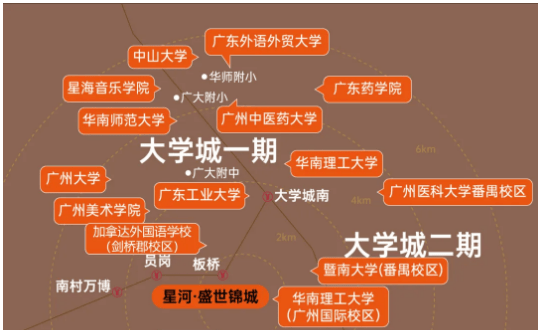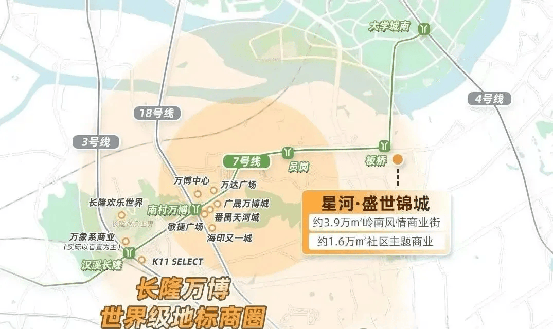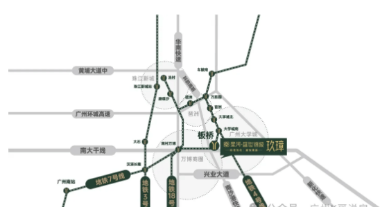 星河·盛世锦城地理位置得天独厚,坐落于广州番禺万博·余荫山房北侧·板桥地铁站旁,地处南大干线经济带上的番禺黄金财智走廊,具备强大的区域发展潜力。这一走廊不仅是连接珠三角东西岸的重要发展走廊,更串联了番禺多个关键经济板块,如广州南站、长隆万博、国际创新城以及汽车城板块,为居民带来丰富的就业机会与发展机遇。