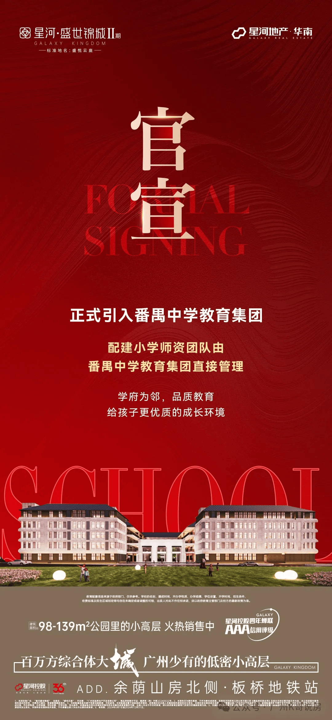 星河控股集团,深耕城市运营35载,资产规模超千亿,始终秉持“星河所在,必定中心”的造城理念,以匠心品质赋能城市发展。星河·盛世锦城作为集团布局番禺的重点项目,不仅是一次人居作品的打造,更是对区域价值的深度挖掘与升级。
