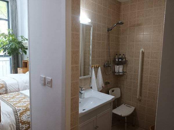 房间更是惊喜满满,从起居、情绪、安全和功能配套四个维度,融入130余项适老化标准,拒绝千篇一律的“养老风”。护理床、呼叫器、储物柜、床头灯、电视、空调、冰箱、电话等设施一应俱全;独立卫生间配备热水器、洗衣机,还有轮椅坡道、安全扶手、防滑地板,全方位规避跌倒风险;采暖、新风系统24小时运行,室内温度适宜,空气清新,还有智能监测设备,实时关注长辈身体状况,细微之处,皆是温柔。