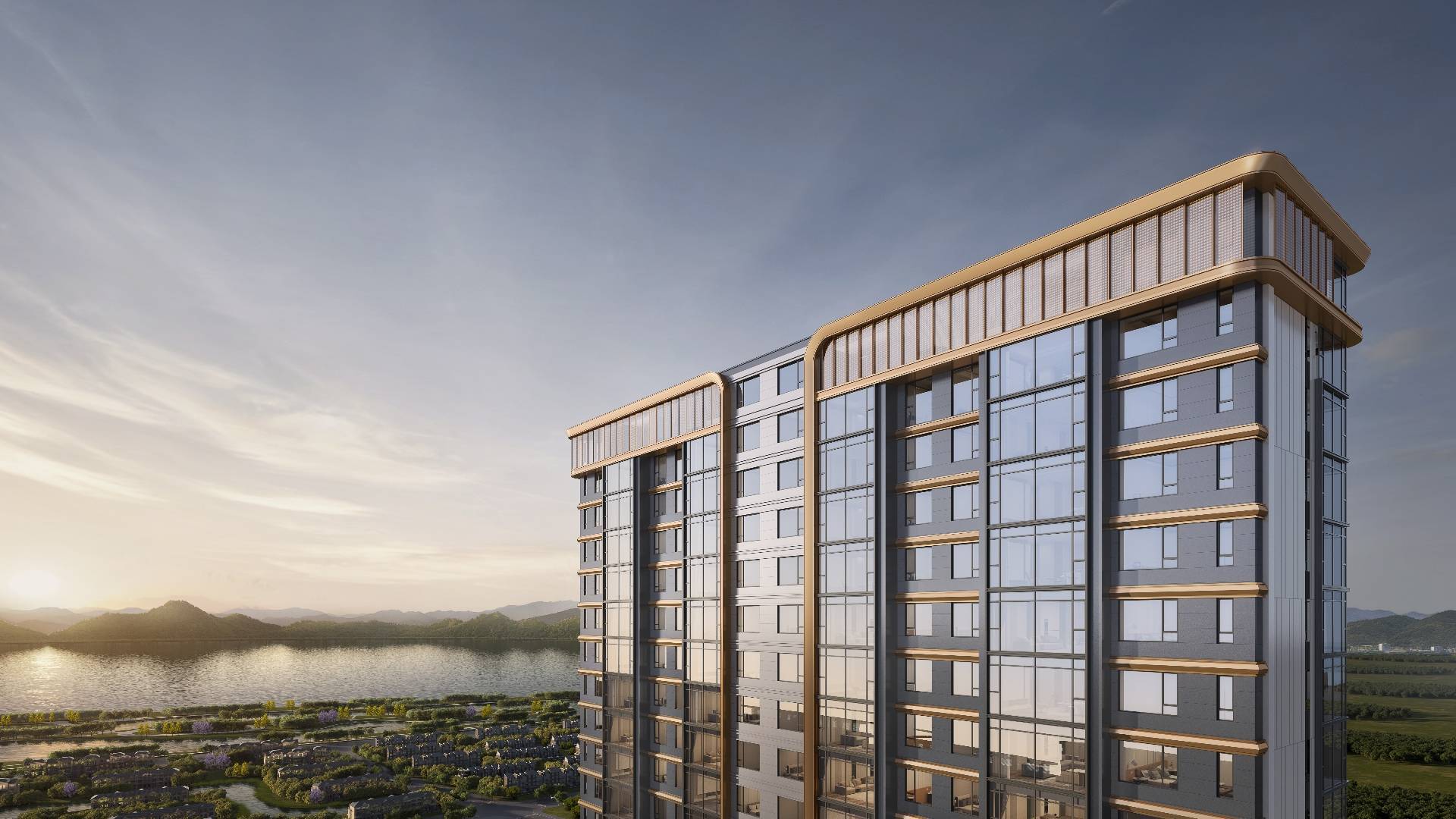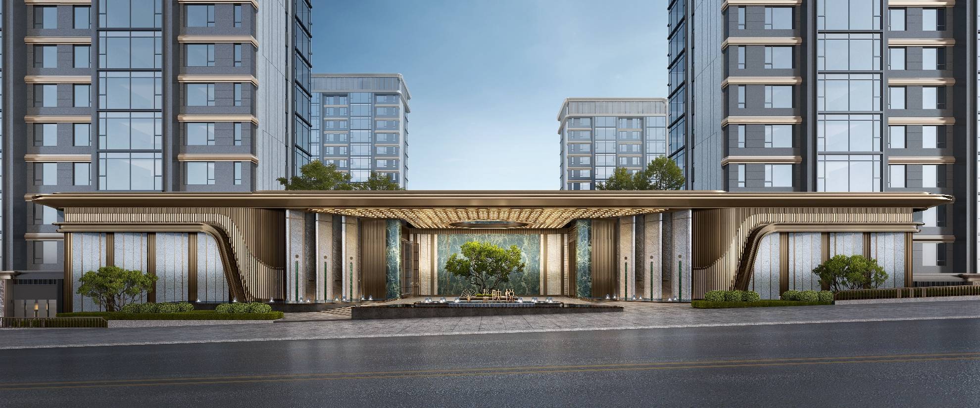 【光感立面】 光幕美学立面,泛光冠顶,极致窗墙比,宝格丽香槟金建筑线条;