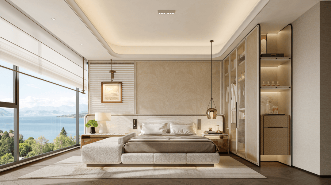 至高约38.76m²主卧,搭配步入式衣帽间、全明卫浴,以奢阔的空间尺度,营造酒店套房般的尊崇体验。
