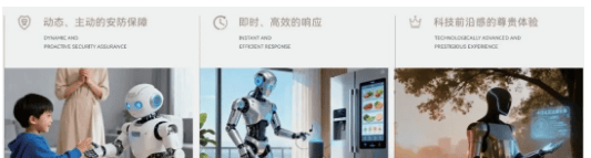 运动休闲配套:社区配备专业健身房、室内外游泳池、环形健康慢跑道、儿童探索乐园、长者康体区等全龄运动设施,满足不同年龄段业主运动需求;AI 智能机器人提供全场景服务,动态安防、即时响应,保障社区安全与生活便捷。