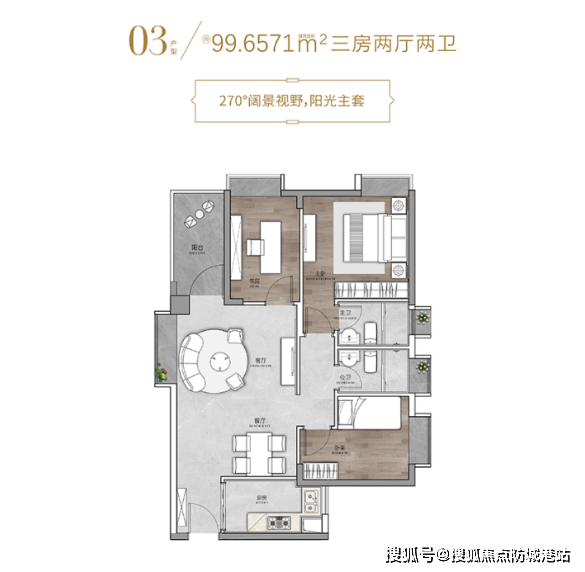 对于追求更高生活品质的改善型家庭,95-99㎡的三房两卫户型是热门之选。
