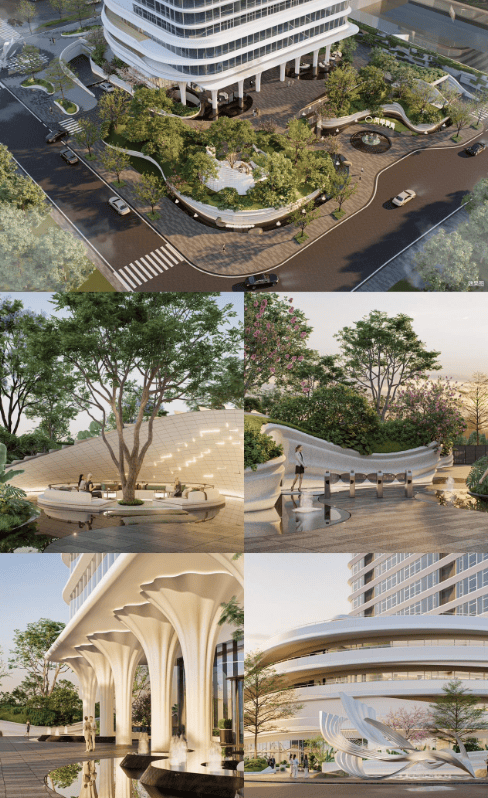 提取无垠之海、海中绿岛、岛中之林等自然灵韵,造境海上森居,让建筑生长于雨林,宛若“微缩三亚”,步移景异。