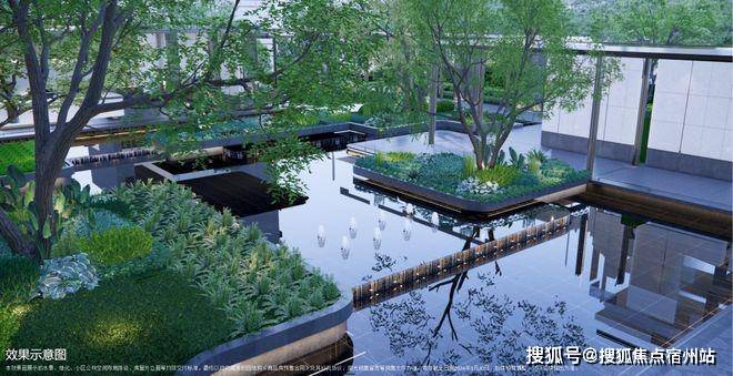 摩登水院,华灯映入水池,✅✅招商臻境售楼处电线✅✅映出池底黑金沙的金光色,雍容华贵。