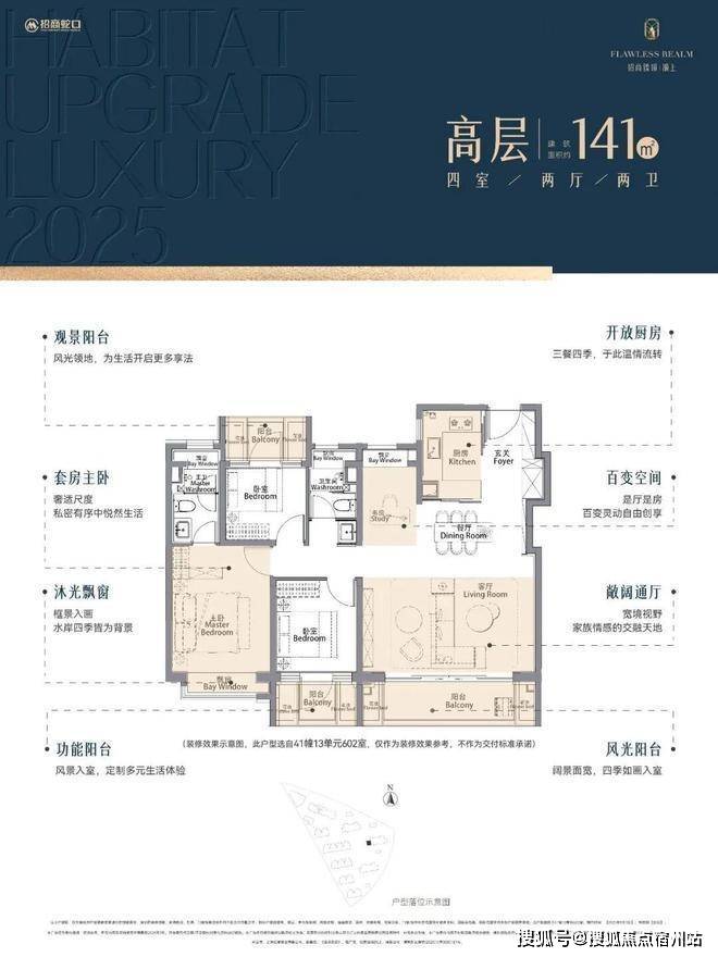 2、延伸空间拉满!主卧套房飘窗+步入式衣帽间+独立卫浴拥有2个飘窗,尊崇感与实用性拉满!三阳台+花池+4飘窗结构,✅✅招商臻境售楼处电线✅✅有效